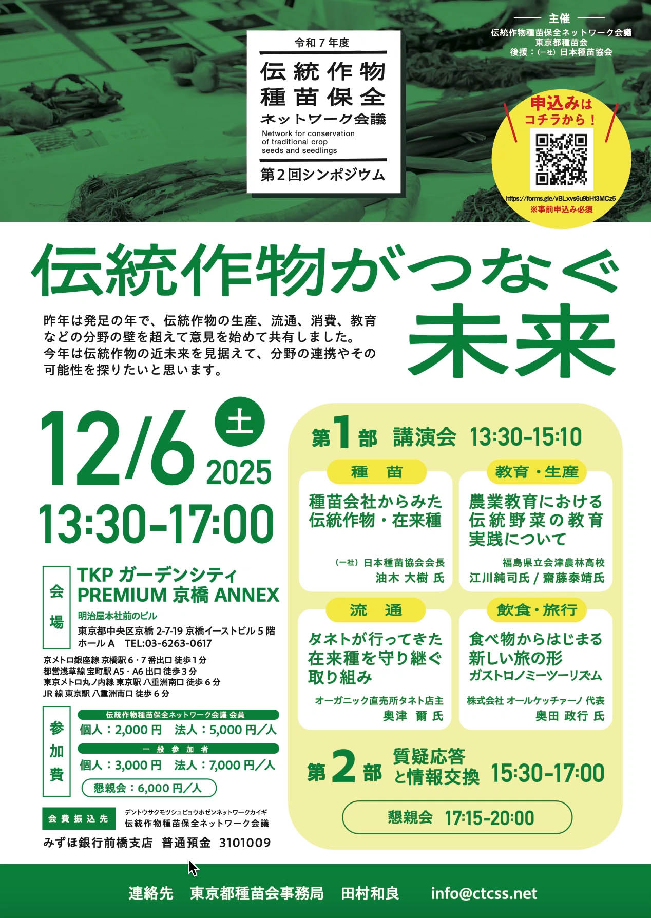 『伝統作物がつなぐ未来』が、12/6(土)13:30〜に、